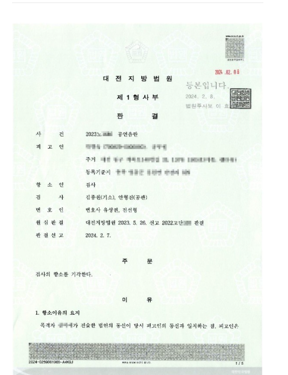 [Çü»ç] °ø¿¬À½¶õ»ç°Ç¿¡¼ ¹«ÁËÆÇ°áÀÌ À¯ÁöµÈ »ç·Ê
