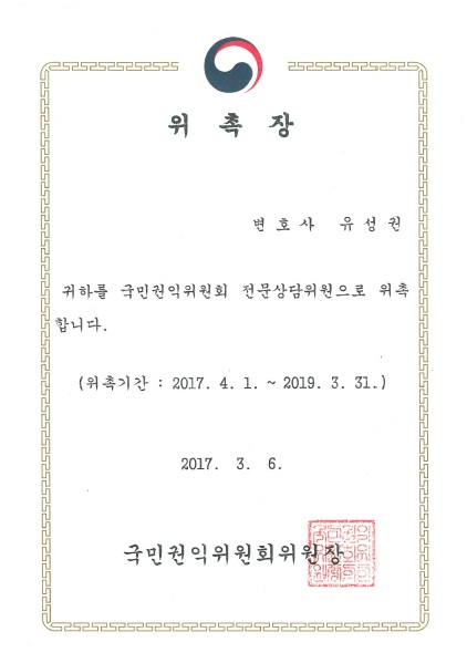 ¡ã 2016.03 ±¹¹Î±ÇÀÍÀ§¿øÈ¸ Àü¹®»ó´ãÀ§¿øÁõ ¼ö·É (2015³â 4¿ù À§ÃË)