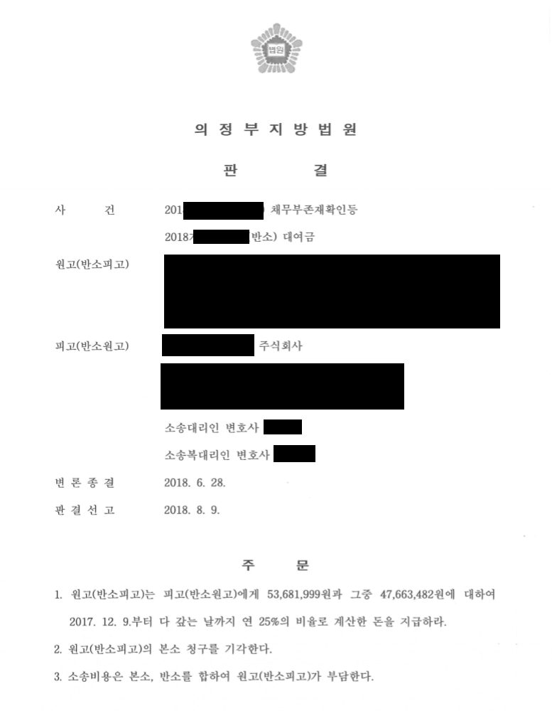 Çǰí(¹Ý¼Ò¿ø°í)´Â ¿ø°í¿Í ÇҺαÝÀ¶´ëÃâ°è¾àÀ» ü°áÇÑ ÈÄ ´ëÃâ±ÝÀ» Áö±ÞÇÏ¿´À¸³ª ¿ø°í(¹Ý¼ÒÇǰí)´Â °è¾à¹«È¿ µîÀÇ ÀÌÀ¯¸¦ µé¾î 乫ºÎÁ¸Àç È®ÀÎÀÇ ¼Ò¸¦ Á¦±âÇÏ¿´½À´Ï´Ù. ÀÌ¿¡ Çǰí´Â ¹Ý¼Ò·Î ´ë¿©±Ý û±¸ÀÇ ¼Ò¸¦ Á¦±âÇÏ¿´°í ¹ý¿øÀ¸·ÎºÎÅÍ ¿ø°í´Â ÇÇ°í¿¡°Ô ±Ý¿ø Áö±ÞÀ» Ç϶ó´Â ÆÇ°áÀ» ¹Þ°Ô µÇ¾ú½À´Ï´Ù.