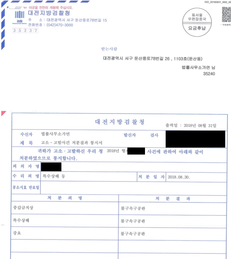 °í¼ÒÀÎ(ÀÇ·ÚÀÎ)Àº Çǰí¼ÒÀÎÀ¸·ÎºÎÅÍ Á¤´çÇÑ ÀÌÀ¯µµ ¾øÀÌ °¨±Ý, ÆøÇà, °¿ä¸¦ ´çÇß½À´Ï´Ù. ÀÌÈÄ °í¼ÒÀÎÀº À¯¼º±Ç º¯È£»ç¿Í »ó´ã ÈÄ Çǰí¼ÒÀÎÀ» Ư¼ö°¨±ÝÄ¡»ó, Ư¼ö»óÇØ, °¿äÁË·Î °í¼Ò¸¦ ÁøÇàÇÏ¿´°í, ÀÌÈÄ °ËÂû¿¡¼´Â º» »ç°ÇÀ» Ư¼ö°¨±ÝÄ¡»ó µîÀ¸·Î °ø¼ÒÁ¦±â¸¦ ÇÏ¿´½À´Ï´Ù.