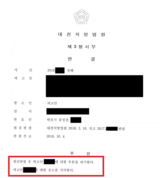 ÇǰíÀÎÀº ÇÇÇØÀÚ¿¡°Ô »óÇØ¸¦ °¡ÇÑ ÇøÀÇ·Î ±â¼ÒµÇ¾î ¿ø½É¿¡¼ »óÇØÁË·Î À¯ÁË ÆÇ°áÀ» ¹Þ°Ô µÇ¾ú½À´Ï´Ù. º´¿øÄ¡·á¸¦ ¿äÇÏÁö ¾ÊÀ» Á¤µµÀÇ °æ¿ì ÆøÇàÁ˰¡ µÇ¸ç ÆøÇàÁË´Â ¹ÝÀÇ»çºÒ¹úÁË·Î ÇÇÇØÀÚÀÇ Ã³¹úÀǻ簡 ¾ø´Â °æ¿ì¿¡´Â ó¹úÀÌ µÇÁö ¾Ê½À´Ï´Ù. ´Ù¸¸ »óÇØÁËÀÇ °æ¿ì¿¡´Â ÇÇÇØÀÚÀÇ ÀÇ»ç¿Í °ü°è¾øÀÌ Ã³¹úÀÌ ÀÌ·ç¾îÁý´Ï´Ù. µû¶ó¼ º» »ç°Ç¿¡¼´Â ÇÇÇØÀÚ°¡ º´¿øÄ¡·á¸¦ ¿äÇÒ Á¤µµÀÎÁö°¡ ÀïÁ¡ÀÌ µÇ¾î Ç׼ҽɿ¡¼ »ç½Ç¿ÀÀÎÀ» ÀÌÀ¯·Î Ç×¼Ò ÇÏ¿´°í »óÇØÁø´ÜÀº ÀÖÀ¸³ª º´¿øÄ¡·á¸¦ ¹ÞÀº »ç½ÇÀÌ ¾ø´Â Á¡, º´¿øÄ¡·á¸¦ ¿äÇÒ Á¤µµ·Î ´ÙÃÆ´Ù°í º¸±â ¾î·Á¿î Á¡ µû¶ó¼ »óÇØÀÇ °á°ú°¡ ¹ß»ýÇÏÁö ¾Ê¾ÒÀ» °¡´É¼ºÀ» ¹èÁ¦ÇÒ ¼ö ¾ø´Â Á¡°ú ÇǰíÀÎÀ¸·Î ÀÎÇÑ »óÇØÀÇ °á°ú°¡ ¾Æ´Ò ¼öµµ ÀÖ´Â Á¡ µîÀ» ÁÖÀåÇÑ °á°ú, ¹ý¿øÀ¸·ÎºÎÅÍ ¿ø½É ÇǰíÀο¡ ´ëÇÑ °ø¼Ò ±â°¢(¹«ÁË) ÆÇ°áÀ» ¹Þ°Ô µÇ¾ú½À´Ï´Ù.