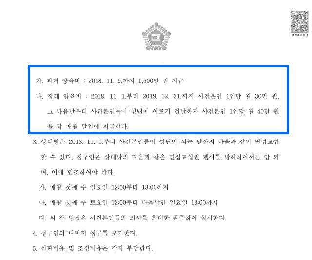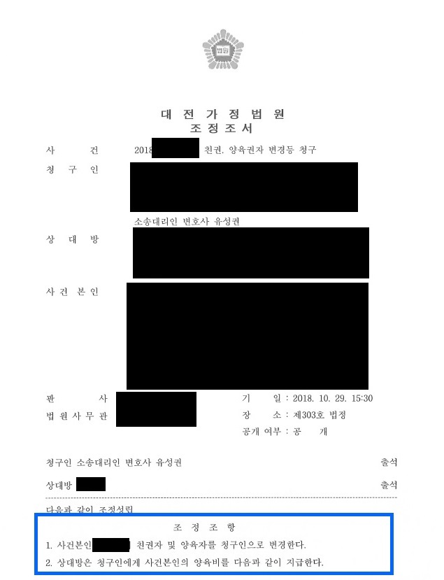 û±¸Àΰú »ó´ë¹æÀº ¿À·¡Àü ÇùÀÇÀÌÈ¥À» ÇÑ »çÀÌÀÔ´Ï´Ù. ÀÌÈ¥½Ã »ó´ë¹æÀÌ Ä£±Ç ¹× ¾çÀ°ÀÚ·Î ÇÏ´Â °Í¿¡ ÇùÀǸ¦ ÇÏ¿´À¸³ª »ó´ë¹æ »çÁ¤À¸·Î ÀÎÇÏ¿© û±¸ÀÎÀÌ ¾çÀ°À» ÇÏ°Ô µÇ¾ú½À´Ï´Ù. û±¸ÀÎÀÌ ¾çÀ°ÀÚ°¡ µÈ ÀÌÈÄ »ó´ë¹æÀº ¾çÀ°¿¡ ´ëÇØ °ü½ÉÀ» °¡ÁöÁö ¾Ê¾Ò°í ¾çÀ°ºñ Áö±Þµµ µÇÁö ¾Ê¾Ò½À´Ï´Ù. ÀÌÈÄ Ã»±¸ÀÎÀº ÀÚ³àÀÇ Ä£±Ç ¹× ¾çÀ°ÀÚ º¯°æÀ» û±¸ÇÏ¿´°í ±× °á°ú, Ä£±Ç ¹× ¾çÀ°ÀÚ º¯°æ°ú °ú°Å ¹× Àå·¡ ¾çÀ°ºñÀÇ Áö±Þ µîÀ» ÇÏ´Â °ÍÀ¸·Î Á¶Á¤ÀÌ ¼º¸³ µÇ¾ú½À´Ï´Ù.
