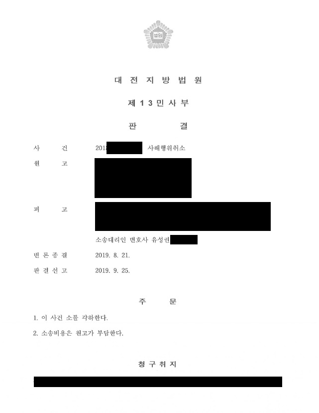 ´ë¸®Á¡Àº Çǰí¿Í ä±Ç¾çµµ°è¾àÀ» ÇÏ¿´½À´Ï´Ù. ´ç½Ã ´ë¸®Á¡Àº 乫Ãʰú»óÅ·Π±¹¼¼ ¹× ü³³±Ý Ãæ´çÀÌ ¾î·Æ´Ù´Â °ÍÀ» ¾Ë°Ô µÈ ¿ø°í´Â ÇÇ°í¸¦ 2Â÷ ³³¼¼Àǹ«ÀÚ·Î ÁöÁ¤ÇÏ¿´°í ÀÌÈÄ ¿ø°í´Â ¾çµµ°è¾àÀÌ »çÇØÇàÀ§¶ó°í ÆÇ´ÜÇÏ¿© ¼Ò¸¦ Á¦±âÇÑ »ç¾ÈÀÔ´Ï´Ù. Çǰí´Â °è¾à ´ç½Ã ´ë¸®Á¡ÀÌ Ã¤¹«Ãʰú»óÅÂÀÎ °ÍÀ» ¾Ë ¼ö ¾ø¾ú°í, ä±ÇÀÚÃë¼Ò±ÇÀÇ Á¦Ã´±â°£ÀÌ µµ°úÇÏ¿© ºÎÀû¹ýÇÏ´Ù°í Ç׺¯ÇÏ¿´½À´Ï´Ù. ÀÌÈÄ ¹ý¿øÀ¸·ÎºÎÅÍ, Á¦Ã´±â°£ µµ°ú¿¡ ´ëÇÑ Ç׺¯ÀÌ ¹Þ¾Æµé¿©Á® ¼Ò °¢ÇÏ ÆÇ°áÀ» ¹Þ°Ô µÇ¾ú½À´Ï´Ù.