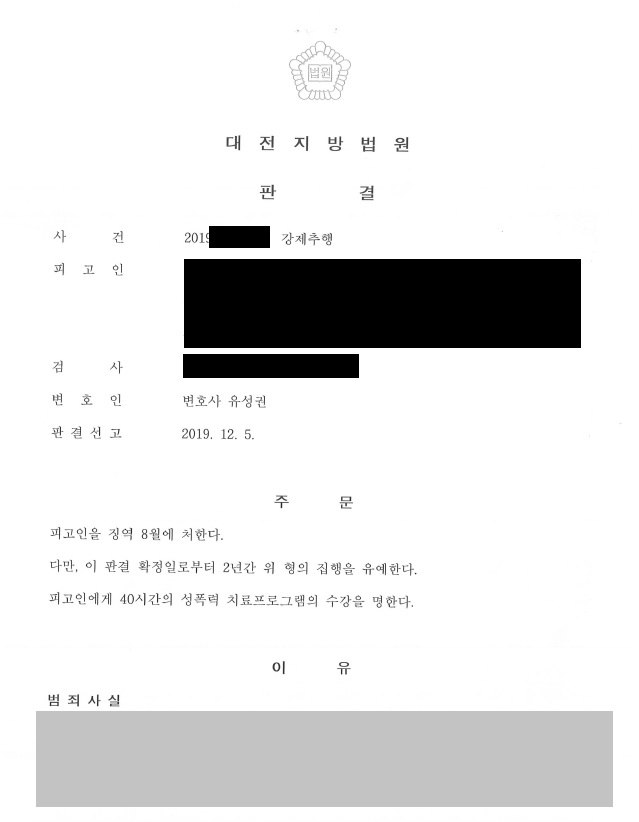ÇǰíÀÎÀº Á÷Àå ȸ½Ä ÈÄ ¼ú¿¡ ÃëÇÑ ÇÇÇØÀÚ¸¦ ÁýÀ¸·Î µ¥·Á´ÙÁØ ÈÄ °Á¦ÃßÇàÀ» ÇÑ ÇøÀÇ·Î ±â¼ÒµÇ¾ú½À´Ï´Ù. ÀÌÈÄ À¯¼º±Ç º¯È£ÀÎÀº ¹Ý¼º¹®, ź¿ø¼ µî ¿©·¯ ¾çÇü»çÀ¯¸¦ ÁÖÀåÇÑ °á°ú, ¹ý¿øÀ¸·ÎºÎÅÍ Â¡¿ª 8¿ù¿¡ ÁýÇàÀ¯¿¹ 2³â ÆÇ°áÀ» ¹Þ°Ô µÇ¾ú½À´Ï´Ù.