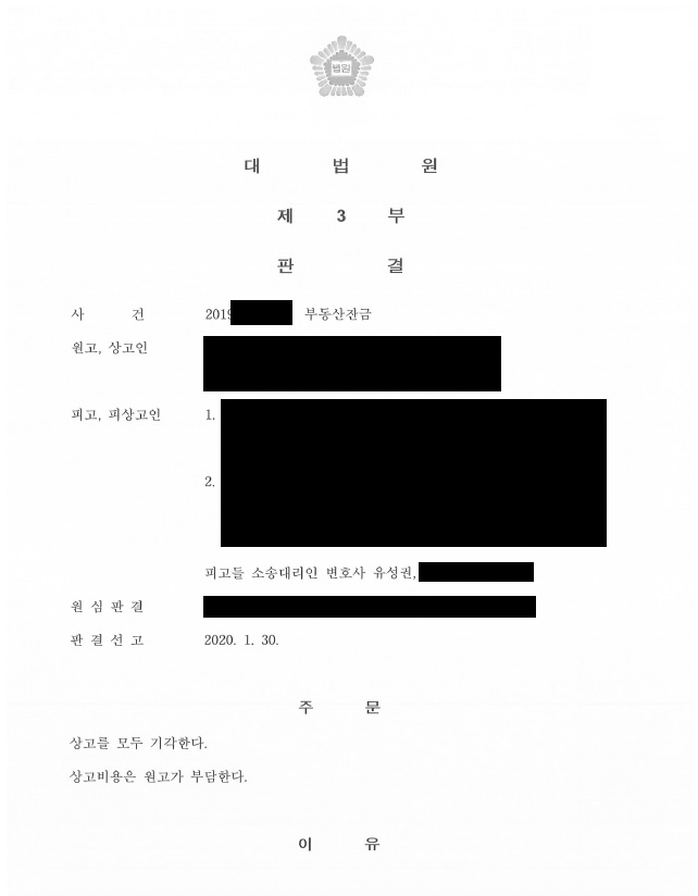 ¿ø½É¿¡¼ ¿ø°í´Â ºÎµ¿»ê Àܱݿ¡ ´ëÇÑ ¸Å¸Å´ë±ÝÁö±ÞÀǹ«¸¦ ÀÌÇàÇÏÁö ¾Ê¾Ò´Ù°í ¼Ò¸¦ Á¦±âÇÏ¿´À¸³ª û±¸ ±â°¢ µÇ¾ú½À´Ï´Ù. ÀÌÈÄ ¿ø°í(»ó°íÀÎ)´Â »ç½Ç¿ÀÀÎ ¹× ¹ý¸®¿ÀÇØÀÇ À§¹ýÀÌ ÀÖ´Ù°í ÁÖÀåÇÏ¸ç »ó°í¸¦ ÇÏ¿´À¸³ª ´ë¹ý¿øÀ¸·ÎºÎÅÍ »ó°í ±â°¢ ÆÇ°áÀ» ¹Þ°Ô µÇ¾ú½À´Ï´Ù.