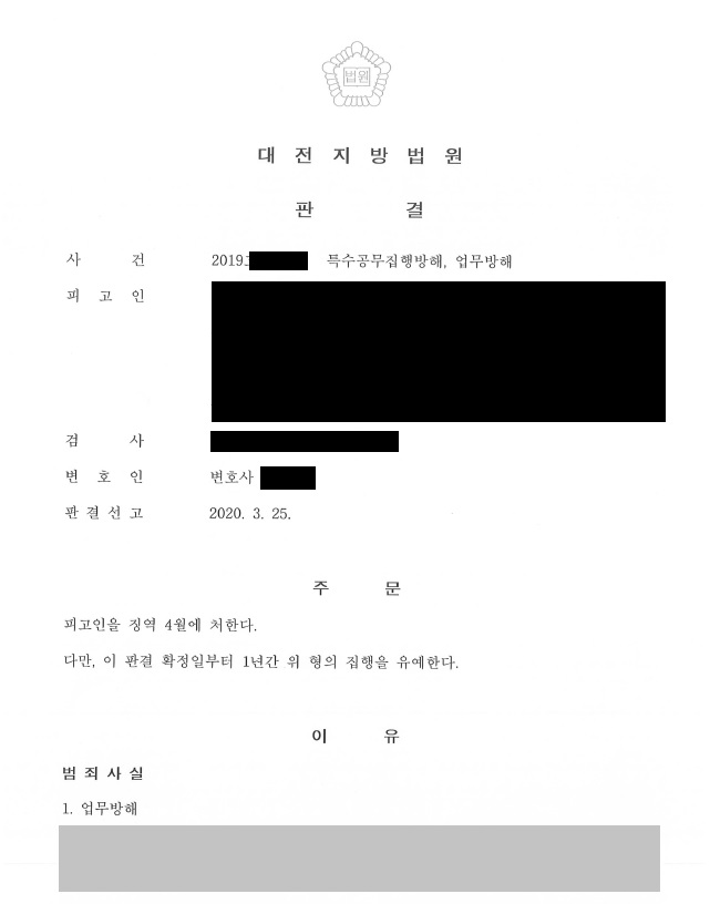 ÇǰíÀÎÀº ½Ä´ç¿¡¼ ¼Ò¶õÀ» ÇÇ¿ìÀÚ ½Å°í¸¦ ¹Þ°í Ã⵿ÇÑ °æÂû°ü¿¡°Ô ÁÖ¹æ¿ë °¡À§·Î À§ÇùÀûÀÎ ÇൿÀ» ÇÏ¿© Ư¼ö°ø¹«ÁýÇà¹æÇØ, ¾÷¹«¹æÇØ ÇøÀÇ·Î ±â¼ÒµÇ¾ú½À´Ï´Ù. ÀÌÈÄ À¯¼º±Ç º¯È£ÀÎÀº µ¿Á¾Àü°ú°¡ ¾ø´Â Á¡, ÇÇÇØÀÚ¿Í ÇÕÀÇÇÑ Á¡, ¿ì¹ßÀû ¹üÇàÀÎ Á¡ µîÀ» ÁÖÀåÇÏ¿© ¹ý¿øÀ¸·ÎºÎÅÍ, ¡¿ª 4¿ù¿¡ ÁýÇàÀ¯¿¹ 1³âÀ» ¹Þ°Ô µÇ¾ú½À´Ï´Ù.