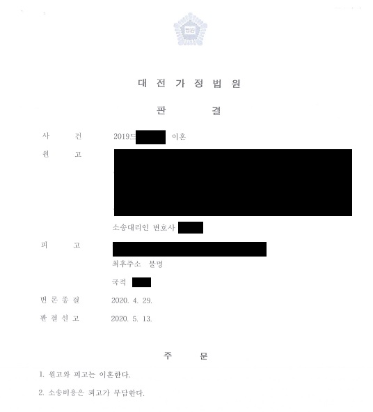 Çǰí´Â È¥ÀÎ ÈÄ ¾ó¸¶ Áö³ªÁö ¾Ê¾Æ ÀÌÀ¯ ¾øÀÌ °¡ÃâÀ» ÇÏ¿´°í ÀÌÈÄ ºÎÁ¤ÇàÀ§±îÁö ÀúÁú·¯ ¿ø°í´Â ÇÇ°í¸¦ »ó´ë·Î ¾ÇÀÇÀÇ À¯±â ¹× ºÎÁ¤ÇàÀ§¸¦ ÀÌÀ¯·Î ¼Ò Á¦±â ÇÏ¿´½À´Ï´Ù. ÀÌÈÄ ¹è¿ìÀÚ ¼ÒÀçºÒ¸íÀ¸·Î ÀÎÇÏ¿© °ø½Ã¼Û´ÞÀ» ÅëÇÏ¿© ¼Ò¼ÛÀ» ÁøÇàÇÑ °á°ú, ¹ý¿øÀ¸·ÎºÎÅÍ ÀÌÈ¥ ÆÇ°áÀ» ¹Þ°Ô µÇ¾ú½À´Ï´Ù.