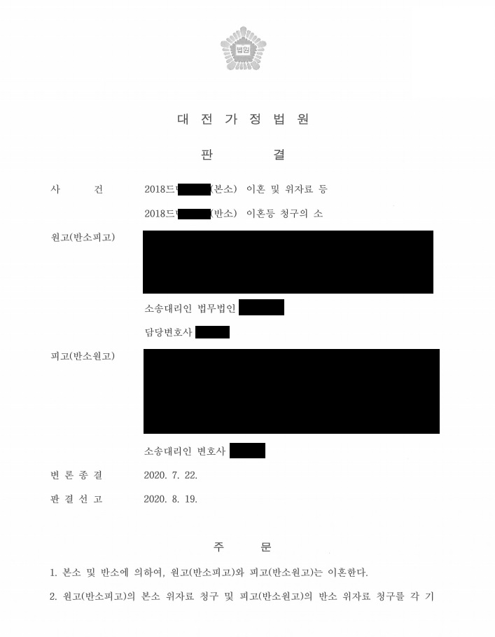 ¿ø°í´Â ÇǰíÀÇ °¡Ãâ, Æø¾ð µîÀ» ÀÌÀ¯·Î ÀÌÈ¥ û±¸ÇÏ¿´°í Çǰí´Â ¿ø°íÀÇ Æø¾ð, ÆøÇà, ºÎÁ¤ÇàÀ§¸¦ ÀÌÀ¯·Î ¹Ý¼Ò û±¸ÇÑ »ç¾ÈÀÔ´Ï´Ù. º» »ç¾È¿¡¼ÀÇ ÀïÁ¡ÀÌ µÈ °ÍÀº ¿ø°íÀÇ °úµµÇÑ Àç»êºÐÇÒ Ã»±¸¿´À¸¸ç Çǰí´Â ¿ø ÇÇ°í ¼ÒÀ¯ÀÇ Àç»ê µîÀ» Àû±ØÀûÀ¸·Î »ìÆì ¿ø°í¿¡°Ô Áö±ÞµÇ¾î¾ß ÇÒ ÀûÁ¤ Àç»êºÐÇÒ ±Ý¾×À» Àû±Ø ÁÖÀåÇÑ °á°ú, ¹ý¿øÀ¸·ÎºÎÅÍ ¿ø Çǰí ÀÌÈ¥°ú Çǰí´Â ¿ø°í¿¡°Ô Àç»êºÐÇÒ·Î 210,000,000¿øÀ» Áö±ÞÇ϶ó´Â ÆÇ°áÀ» ¹Þ°Ô µÇ¾ú½À´Ï´Ù.