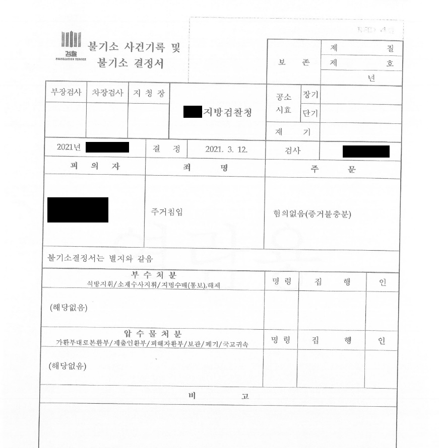 ÇÇÀÇÀÚ´Â ÇÇÇØÀÚÀÇ Àǻ翡 ¹ÝÇÏ¿© ÁÖ°ÅħÀÔ ÇÏ¿´´Ù´Â ÇùÀÇ·Î ¼ö»ç¸¦ ¹Þ°Ô µÇ¾ú½À´Ï´Ù. ÇÇÀÇÀÚ´Â ÇÇÇØÀÚÀÇ »ç½ÇÈ¥ ¹è¿ìÀÚ ¿äû¿¡ µû¶ó ÁýÀ» ¹æ¹®ÇÑ »ç½ÇÀº ÀÖÁö¸¸ ÁÖ°ÅħÀÔÀÇ °íÀǰ¡ ¾ø¾ú´Ù´Â Á¡, ÇÇÇØÀÚ´Â ÀüÀÔ½Å°í¸¸ µÇ¾îÀÖÀ» »Ó ÁÖ°ÅÀÇ ÁְűÇÀÚ¶ó°í º¼ ¼ö ¾ø´Ù´Â Á¡ µîÀ» ÁÖÀåÇÑ °á°ú, °ËÂû·ÎºÎÅÍ ºÒ±â¼Ò ÀǰßÀ» ¹Þ°Ô µÇ¾ú½À´Ï´Ù.