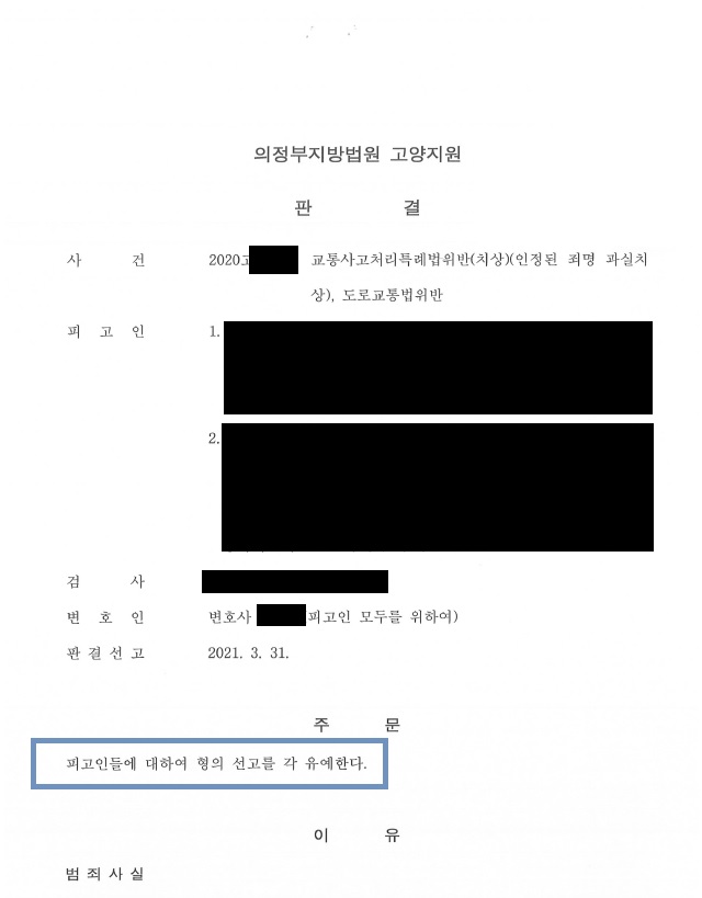 ÇǰíÀεéÀº ÀÚÀü°Å¸¦ ¾ÈÀüÇÏ°Ô ¿îÀüÇÏ¿©¾ß ÇÒ Àǹ«°¡ ÀÖÀ½¿¡µµ ºÒ±¸Çϰí ÀÚÀü°Å¸¦ ¿îÀüÇÏ°í ¿À´ø ÇÇÇØÀÚ¿Í Ãæµ¹ÇÏ¿© ¾÷¹«»ó°ú½ÇÄ¡»ó µîÀ¸·Î ±â¼ÒµÈ »ç¾ÈÀÔ´Ï´Ù. ÀÌÈÄ À¯¼º±Ç º¯È£ÀÎÀº »ç°Ç °¨Á¤À» ÅëÇØ ÇÇÇØÀÚ¿¡°Ôµµ »ó´ç Ã¥ÀÓÀÌ ÀÖ´Ù´Â Á¡°ú ÇǰíÀε鿡°Ô À¯¸®ÇÑ ¿©·¯ ¾çÇü »çÀ¯¸¦ ÁÖÀåÇÏ¿´À¸¸ç, »ç°Ç¿¡ ³ªÅ¸³ ÇǰíÀεéÀÇ ÀÚÀü°Å ¿îÀü ÇàÀ§°¡ ¾÷¹«¿¡ ÇØ´çµÇÁö ¾Ê¾Æ ¾÷¹«»ó °ú½ÇÄ¡»óÀÌ ¾Æ´Ñ ´Ü¼ø °ú½ÇÄ¡»óÀ¸·Î ÀÎÁ¤µÇ¾î, ¹ý¿øÀ¸·ÎºÎÅÍ ¼±°í À¯¿¹ ÆÇ°áÀ» ¹Þ°Ô µÇ¾ú½À´Ï´Ù.
