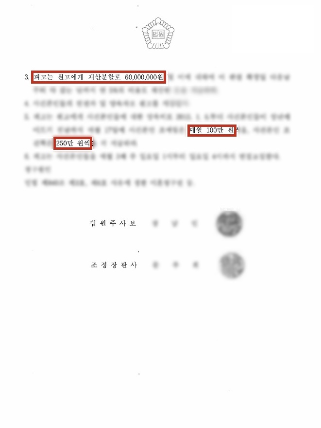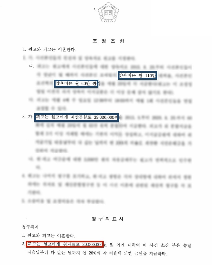 Çǰí¿Í ¿ø°í´Â ¹ý·ü»ó È¥ÀÎ °ü°è¸¦ ¸ÎÀº ºÎºÎÀÔ´Ï´Ù. ±×·¯³ª Çǰí¿Í ¿ø°íÀÇ ÀæÀº ´ÙÅù°ú ¾çÀ°ÀÇ ¹®Á¦·Î ÀÎÇÏ¿© ¿ø°í°¡ ÇÇ°í¿¡°Ô ÀÌÈ¥À» û±¸ÇÏ°Ô µÇ¾ú½À´Ï´Ù. ¿ø°í´Â ÇÇ°í¿¡°Ô À§ÀÚ·á 3000¸¸¿ø, Àç»êºÐÇÒ 6000¸¸¿ø, ¾çÀ°ºñ·Î µÎ Àڳ࿡°Ô ¸Å´Þ 100¸¸¿ø, 250¸¸¿øÀ» °¢ Áö±ÞÇ϶ó°í û±¸ ÇÏ¿´½À´Ï´Ù.