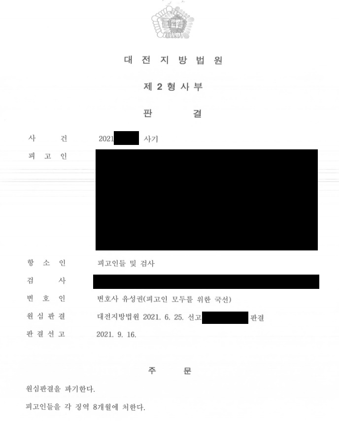 ÇǰíÀεéÀº ¿ø½É¿¡¼ »ç±âÁË·Î ±â¼ÒµÇ¾î ¡¿ª 8°³¿ùÀÇ ½ÇÇüÀ» ¼±°í¹Þ°í ¹ýÁ¤±¸¼ÓµÇ¾úÀ¸³ª ¾çÇüºÎ´çÀ» ÀÌÀ¯·Î Ç×¼ÒÇÏ¿´½À´Ï´Ù. ÀÌÈÄ ¹üÇàÀ» ÀÚ¹éÇÏ°í ¹Ý¼ºÇÏ´Â Á¡, ÇÇÇØ¾×À» ÀüºÎ º¯Á¦ÇÑ Á¡ µî ¿©·¯ ¾çÇü »çÀ¯¸¦ ÁÖÀåÇÑ °á°ú ¡¿ª 8°³¿ù¿¡ ÁýÇàÀ¯¿¹ 2³â¿¡ óÇÑ´Ù´Â ÆÇ°áÀ» ¹Þ°Ô µÇ¾ú½À´Ï´Ù.