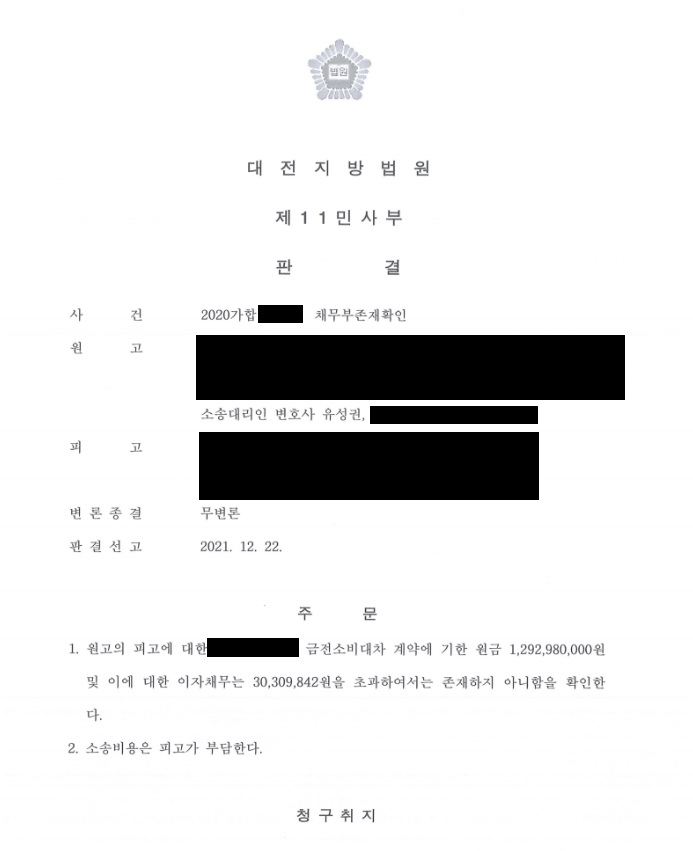 ¿ø°í´Â Çǰí·ÎºÎÅÍ ±Ý¿øÀ» Â÷¿ëÇÏ´Â °úÁ¤¿¡¼ ÀÌÀÚÁ¦Çѹý¿¡¼ Á¤ÇÑ ÃÖ°íÀÌÀÚÀ²À» ÃʰúÇÏ´Â ÀÌÀÚ¸¦ ¿ä±¸¹Þ¾Ò°í ¿ø°í´Â ¿ä±¸´ë·Î ±Ý¿øÀ» Áö±ÞÇÏ¿´½À´Ï´Ù. ÀÌÈÄ ¾àÁ¤ÀÌÀÚÀ²ÀÌ ÃÖ°íÀÌÀÚÀ²À» ÃʰúÇÏ´Â °æ¿ì¿¡ ÃʰúÇÏ´Â ºÎºÐ¿¡ ´ëÇØ¼´Â ¹«È¿¶ó´Â °ÍÀ» ¾Ë°Ô µÇÀÚ ÇÇ°í¿¡°Ô Ãʰú Áö±ÞµÈ ÀÌÀÚ µîÀ» °è»êÇÏ¿© ÃʰúÇÏ´Â Â÷¿ë±Ý乫¿¡ ´ëÇØ¼´Â 乫°¡ Á¸ÀçÇÏÁö ¾Ê´Â´Ù´Â È®ÀÎÀ» ÇϰíÀÚ ¼Ò¸¦ Á¦±âÇÑ »ç¾ÈÀÔ´Ï´Ù. ÀÌÈÄ ¹ý¿øÀ¸·ÎºÎÅÍ Ã»±¸ÃëÁö´ë·Î 乫°¡ ºÎÁ¸ÀçÇÑ´Ù´Â ÆÇ°áÀ» ¹Þ°Ô µÇ¾ú½À´Ï´Ù.