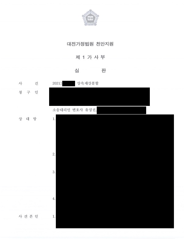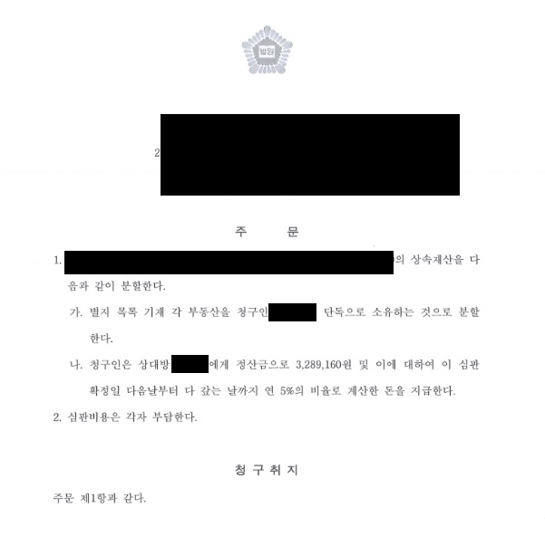 û±¸ÀÎÀº ´Ù¸¥ »ó¼ÓÀΰú »ó¼ÓÀç»êºÐÇÒÇùÀǸ¦ ÇÏ·Á°í ÇÏ¿´À¸³ª »ó¼ÓÀÎ Áß ÇÑ ¸í°ú ¿¬¶ôÀÌ ´êÁö ¾Ê¾Æ »ó¼ÓÀç»êÇùÀǺÐÇÒÀ» ÁøÇàÇÏÁö ¸øÇÏ°Ô µÇÀÚ ¼ÒÀç ÆÄ¾ÇÀÌ ¾ÈµÇ´Â »ó¼ÓÀο¡°Ô »ó¼Ó ºÎµ¿»êÀÇ »ó¼Ó ÁöºÐ¿¡ »óÀÀÇÏ´Â µ·À» Áö±ÞÇÑ´Ù´Â ³»¿ëÀ¸·Î ÇùÀǸ¦ ÇÏ°í »ó¼ÓÀç»êºÐÇÒ Ã»±¸¸¦ ÇÑ »ç¾ÈÀÔ´Ï´Ù. ÀÌÈÄ ¹ý¿øÀ¸·ÎºÎÅÍ Ã»±¸ÃëÁö´ë·Î ºÐÇÒÇ϶ó´Â ½ÉÆÇÀ» ¹Þ°Ô µÇ¾ú½À´Ï´Ù.
