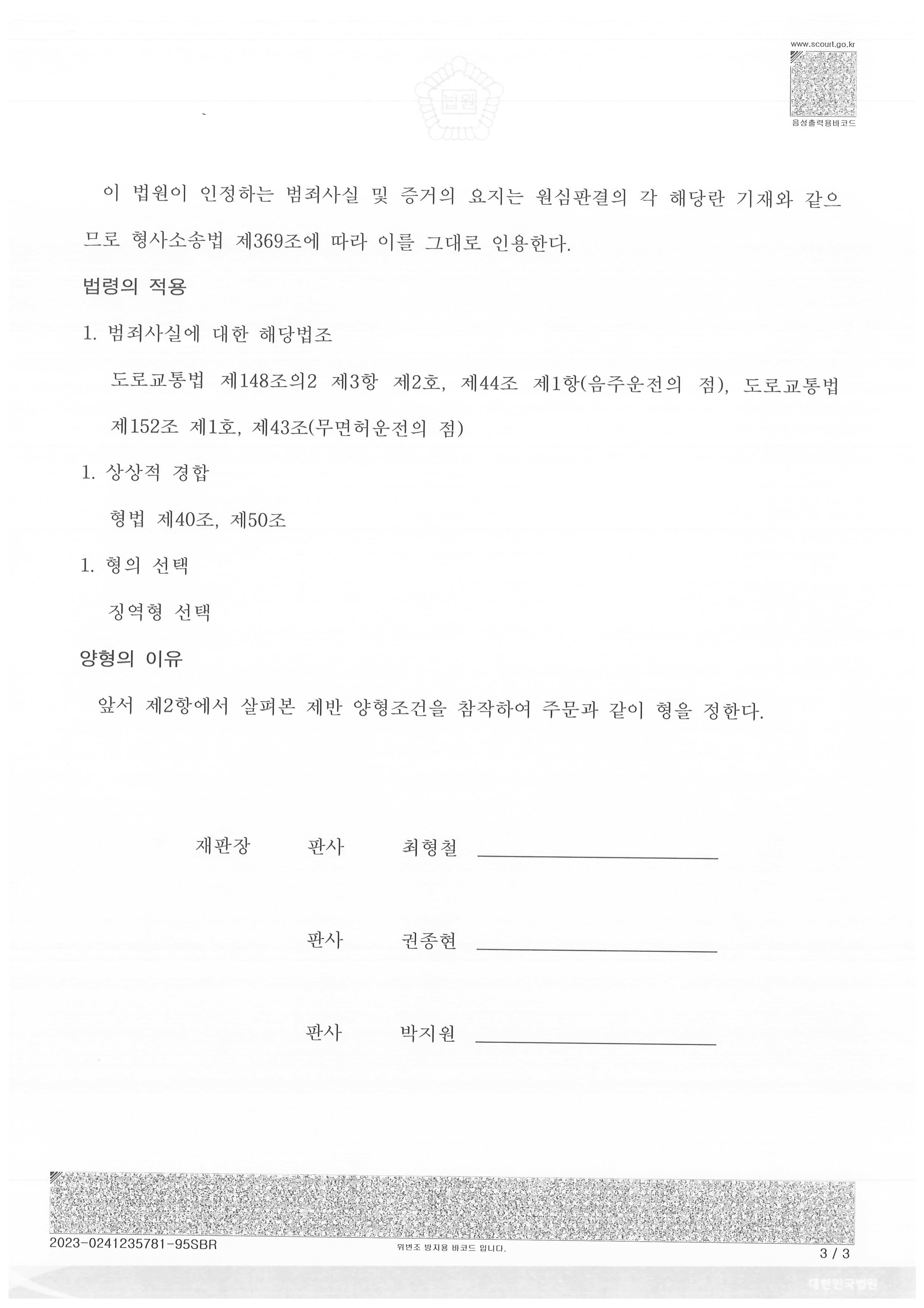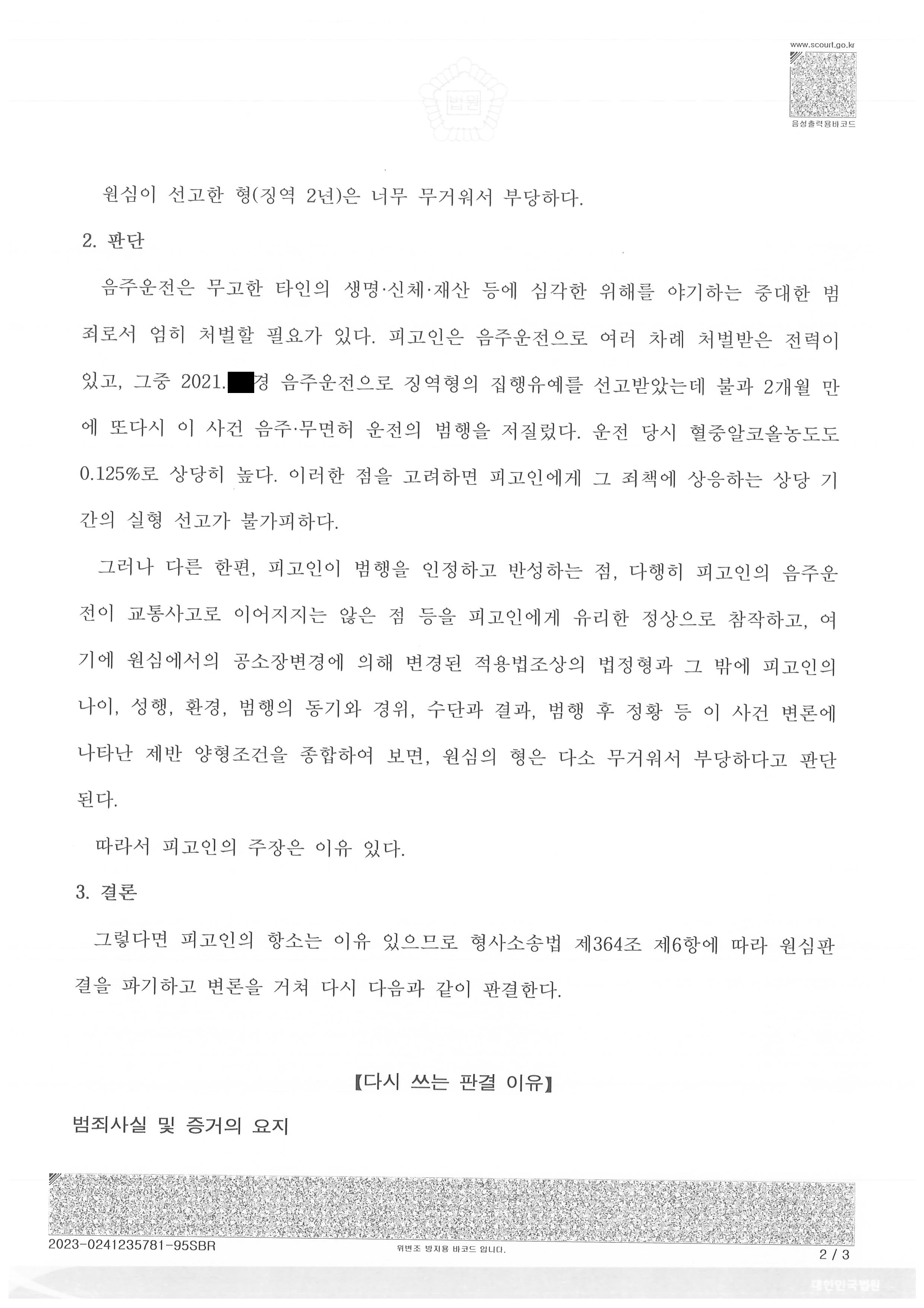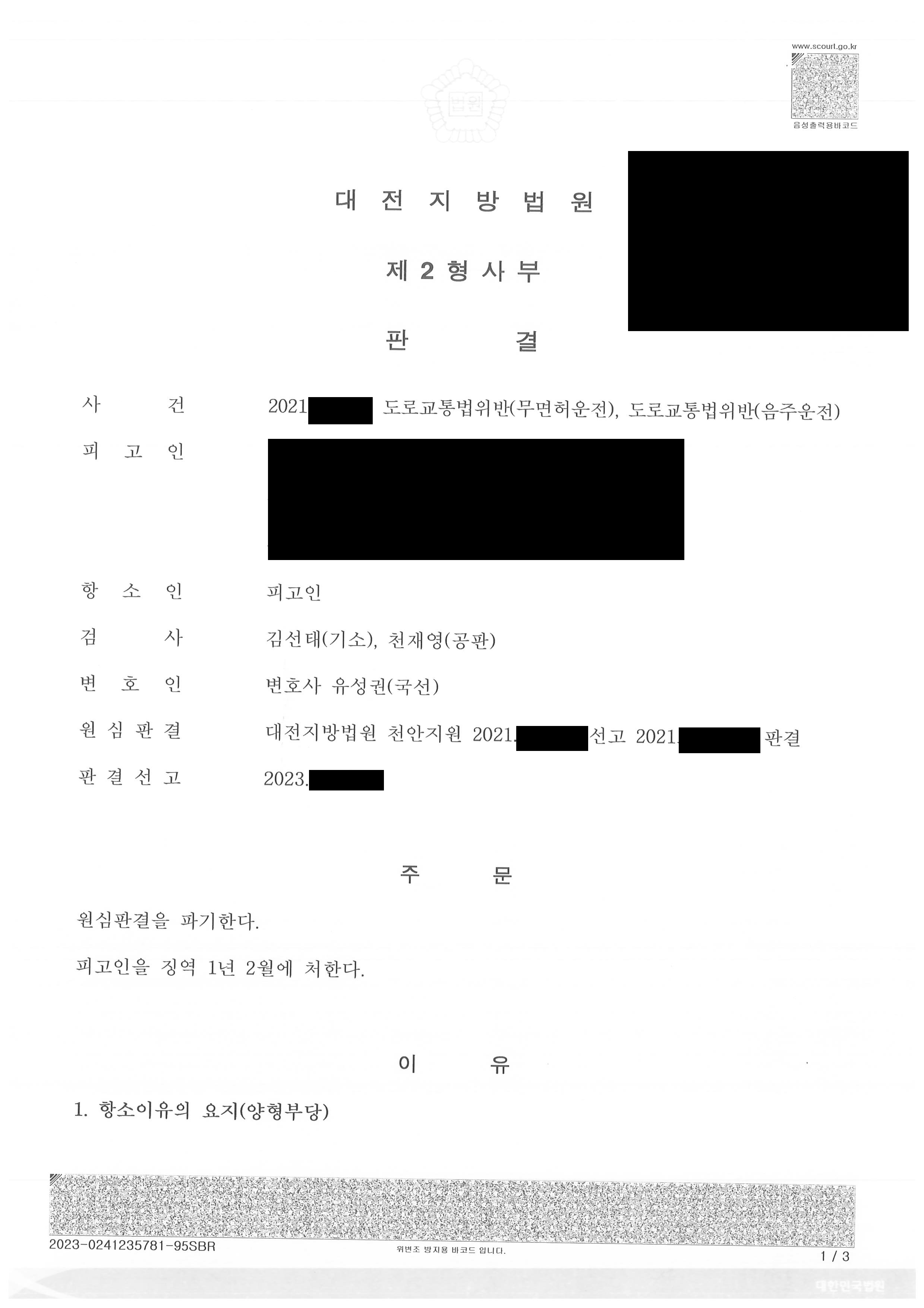 ÀÌ »ç·Ê´Â ¹«¸éÇã¿îÀü, À½ÁÖ¿îÀü µîÀ¸·Î µµ·Î±³Åë¹ýÀ» À§¹ÝÇÑ ÇǰíÀÎÀÌ 1½É¿¡¼ ¡¿ª 2³âÀ̶ó´Â ÁßÇüÀ» ¹ÞÀº »ç°ÇÀÔ´Ï´Ù.