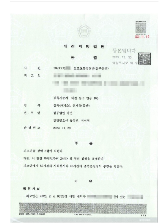 [Çü»ç] 2ȸ ÀÌ»ó À½ÁÖ¿îÀüÀ» ÇÑ »ç°Ç¿¡¼ ¾çÇüÀڷḦ Àû±Ø Á¦ÃâÇÏ¿© ÁýÇàÀ¯¿¹°¡ ÀÌ·ç¾îÁø »ç·Ê