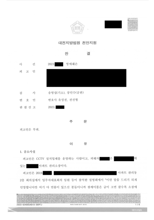 [Çü»ç] ¸í¿¹ÈѼÕÀ¸·Î ±â¼ÒµÈ ÇǰíÀο¡°Ô ¹«ÁËÆÇ°áÀÌ ¼±°íµÈ »ç·Ê