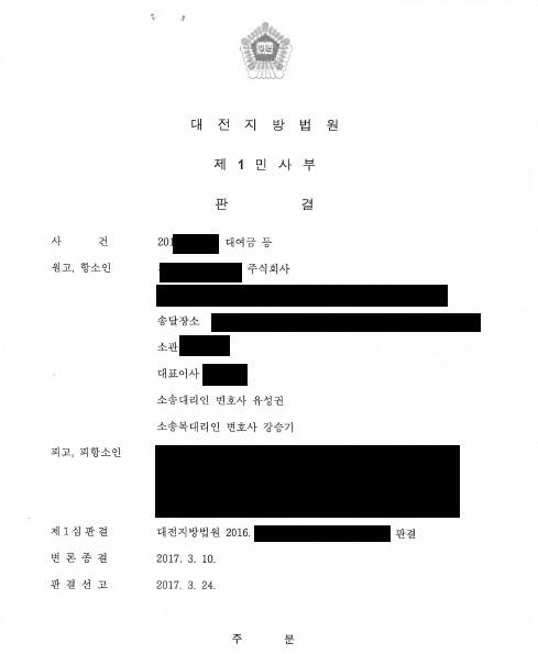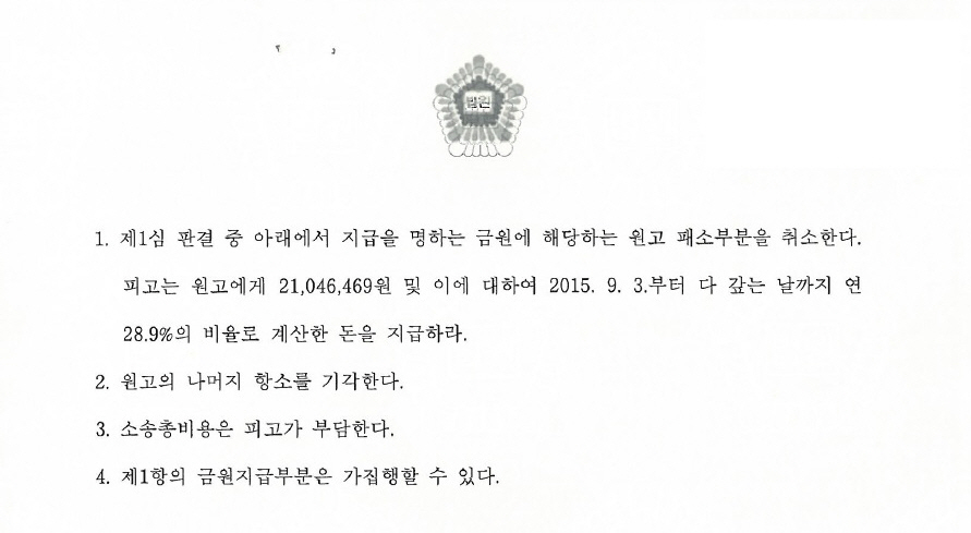 ¿ø½É¿¡¼´Â ¿ø°í(±ÝÀ¶È¸»ç)¿Í Çǰí(ÀÚµ¿Â÷¸Å¼öÀÎ)»çÀÌ¿¡ ´ëÃâ¾àÁ¤ÀÌ ÀÌ·ç¾îÁ³À½¿¡µµ ´ëÃâ±Ý ¼ö·ÉÀÎÀÌ ÇÇ°í°¡ ¾Æ´Ñ ÀÚµ¿Â÷ ¸ÅµµÀÎÀ̶ó´Â ÀÌÀ¯·Î ¿ø°íÀÇ Ã»±¸°¡ ±â°¢µÇ¾ú½À´Ï´Ù. ÀÌÈÄ Ç׼ҽɿ¡¼ ÇÇ°í°¡ ´ëÃâ±Ý ¼ö·É ±ÇÇÑÀ» ¸Å¼öÀο¡°Ô À§ÀÓÇÏ¿´´Ù´Â »ç½Ç, ¸Å¸Å´ë±Ý Áö±ÞÀ» ¿ø°í ȸ»ç¸¦ ÅëÇÏ¿© Áö±ÞÇϴµ¥ µ¿ÀÇÇß´Ù´Â °ÍÀ» ÁÖÀåÇÑ °á°ú, ¹ý¿øÀ¸·ÎºÎÅÍ ¿ø½É ÆÐ¼ÒºÎºÐÀ» Ãë¼ÒÇϰí 21,046,469¿ø ¹× ÀÌ¿¡ ´ëÇÑ ´Ù °±´Â ³¯±îÁö 28.9%ÀÇ ºñÀ²·Î °è»êÇÑ µ·À» Áö±Þ, ¼Ò¼Ûºñ¿ë ÇÇ°í ºÎ´ãÇ϶ó´Â ½Â¼ÒÆÇ°áÀ» ¹Þ¾Ò½À´Ï´Ù.