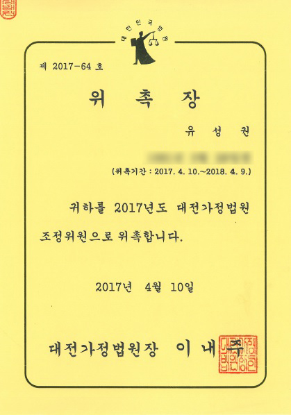 2017³â ´ëÀü°¡Á¤¹ý¿ø Á¶Á¤À§¿øÀ¸·Î À§Ã˵Ǿú½À´Ï´Ù.