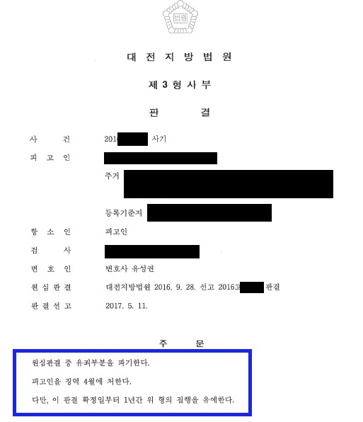 ÇǰíÀÎÀº º¯Á¦ÇÒ ÀÇ»ç, ´É·ÂÀÌ ¾øÀ½¿¡µµ ºÒ±¸Çϰí ÇÇÇØÀÚ¸¦ ±â¸ÁÇÏ¿© 1,388¸¸¿øÀ» ÆíÃëÇÑ ¹üÁË»ç½Ç·Î ¡¿ª 4¿ùÀ» ¼±°í ¹Þ¾Ò½À´Ï´Ù. ÀÌÈÄ ÇǰíÀΰú º¯È£ÀÎÀº ¾çÇüºÎ´çÀ» ÀÌÀ¯·Î Ç×¼Ò¸¦ ÇÏ¿´°í Ç׼ҽɿ¡¼ ¾çÇüºÎ´ç ±×¸®°í ÇÇÇØÀÚ¿ÍÀÇ ÇÕÀÇ µîÀ» À̲ø¾î³» ¹ý¿øÀ¸·ÎºÎÅÍ Â¡¿ª 4¿ù¿¡ ÁýÇàÀ¯¿¹ 1³âÀ» ¼±°í¹Þ°Ô µÇ¾ú½À´Ï´Ù.