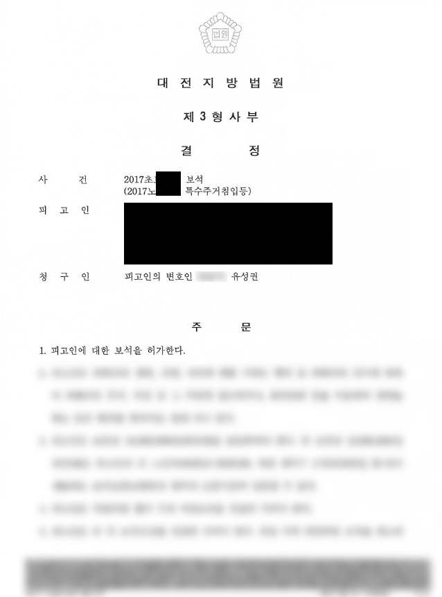 ÇǰíÀÎÀº Ư¼öÁÖ°ÅħÀÔ, Ư¼öÀç¹°¼Õ±«µîÀ¸·Î ±â¼ÒµÇ¾î ¡¿ª 1³âÀ» ¼±°í ¹Þ¾Ò½À´Ï´Ù. ÀÌÈÄ À¯¼º±Ç º¯È£ÀεîÀº »ç°Ç¿¡ ´ëÇØ °ËÅäÇÑ µÚ º¸¼®Çã°¡ ½ÅûÀÌ °¡´ÉÇÏ´Ù°í ÆÇ´ÜµÇ¾î ¹ý¿ø¿¡ ½ÅûÀ» ÇÑ °á°ú, ¹ý¿øÀ¸·ÎºÎÅÍ º¸¼®À» Çã°¡ÇÑ´Ù´Â °áÁ¤À» ¹Þ°Ô µÇ¾ú½À´Ï´Ù.