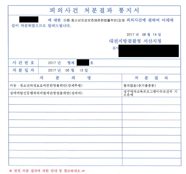 ÀÇ·ÚÀÎÀº ¾Æµ¿Ã»¼Ò³âÀǼºº¸È£¿¡°üÇѹý·üÀ§¹Ý(°Á¦ÃßÇà), ¼º¸Å¸Å¾Ë¼±µîÇàÀ§ÀÇó¹ú¿¡°üÇѹý·üÀ§¹Ý(¼º¸Å¸Å)À¸·Î º» ¹ý·ü»ç¹«¼Ò¸¦ ¹æ¹®ÇÏ¿´°í À¯¼º±Ç º¯È£ÀÎÀÌ ÀÌ »ç¾È¿¡ ´ëÇÏ¿© ÀÚ¼¼È÷ °ËÅäÇÑ ÈÄ ÀÇ·ÚÀÎÀ» Á¶·ÂÇÏ¿© °Á¦ÃßÇà¿¡ ´ëÇØ¼´Â Áõ°ÅºÒÃæºÐ, ¼º¸Å¸Å¿¡ ´ëÇØ¼´Â ¼º±¸¸ÅÀÚ±³À°ÇÁ·Î±×·¥À̼öÁ¶°ÇºÎ ±â¼ÒÀ¯¿¹ óºÐÀ» ¹Þ¾Ò½À´Ï´Ù.